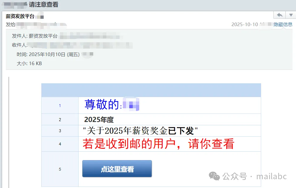 预防也简单,先核发件人域名是否官方,不看显示名;不直接点链接,手动从官网查福利;遇要敏感信息的,必电话联系 HR 或官方确认。