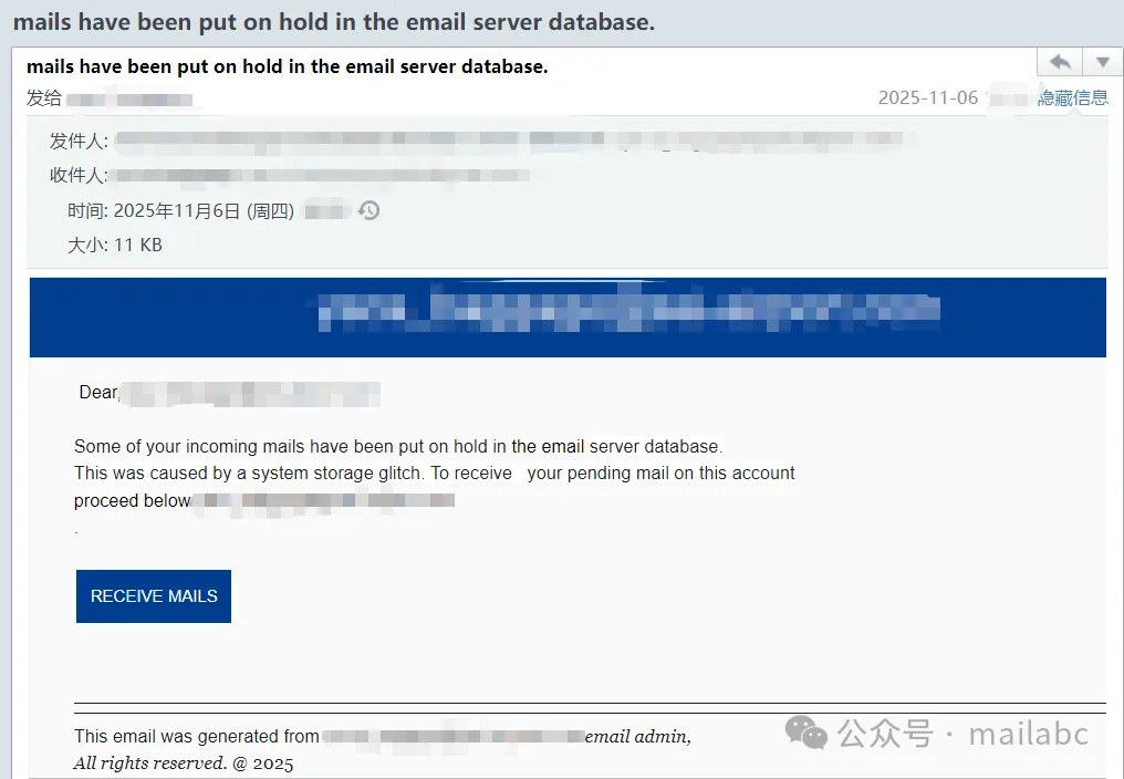 本期主要分享2025年10月中旬至11月中旬常见的钓鱼邮件样本。