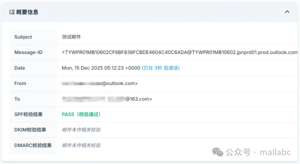 - 发信时间(Date):工具将自动计算该邮件到达收件方服务器的时间差。