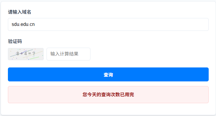 - 为保障服务稳定性,本平台对同一 IP 地址的日查询次数设置限制,超出限制后将暂停该 IP 的查询权限。
